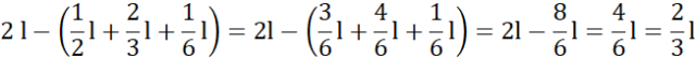 Brakująca ilość wody to różnica 2 litrów napoju i sumy objętości soków owocowych. Sprowadź ułamki do wspólnego mianownika, a następnie wykonaj dodawanie. Na koniec wykonaj odejmowanie.