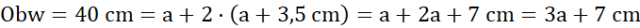 Pamiętaj, ramiona w trójkącie równoramiennym mają taką samą długość. Aby obliczyć długość podstawy, musisz od wartości obwodu odjąć 7 cm (o tyle od podstawy są dłuższe dwa ramiona), a wynik podzielić przez 3.