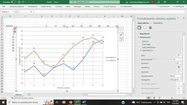 a) O której godzinie wiatr wiał z taką samą prędkością w obydwu miastach?