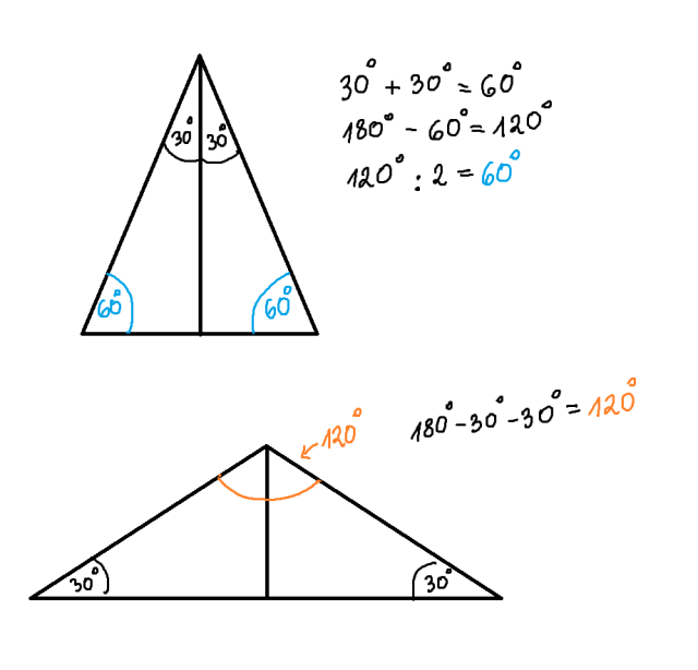 W trójkącie równoramiennym kąty przy podstawie mają równe miary.