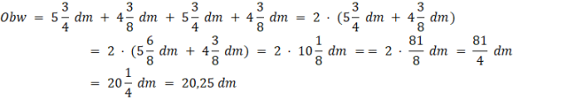 Obwód prostokąta o bokach dm x dm jest równy 20,25 dm. – P
