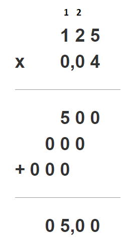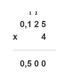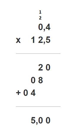 Aby pomnożyć ułamki dziesiętne, wykonuje się mnożenie dziesiętne tak jak w przypadku liczb całkowitych, z uwzględnieniem miejsc po przecinku. Suma ilości miejsc po przecinku w czynnikach jest równa miejscom po przecinku iloczynu.