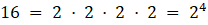 jest rozkładem liczby 16 na czynniki pierwsze.