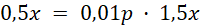 1,5x – p% · 1,5x = x (p to szukany procent)