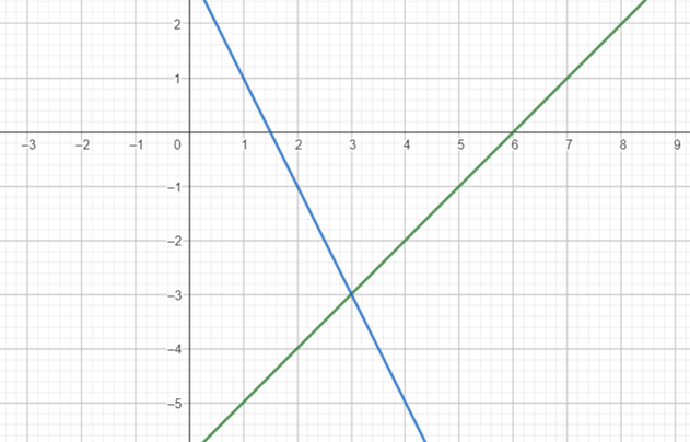 Rozwiązanie to punkt (3, -3).