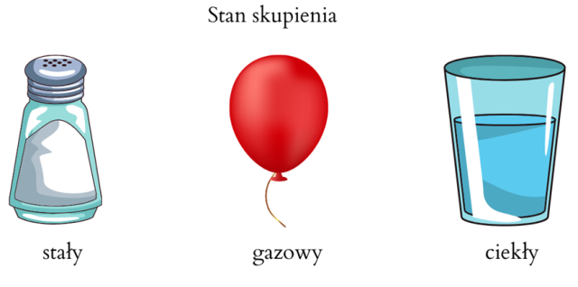 Ilustracja pierwsza od lewej strony: stan skupienia stały