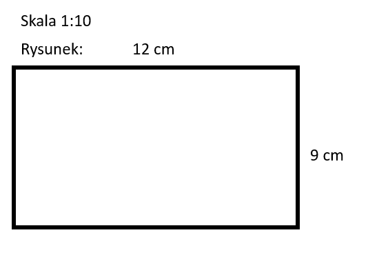 Przykładowa odpowiedź numer 1 (120 cm : 10 = 12 cm oraz 90 cm : 10 = 9 cm).