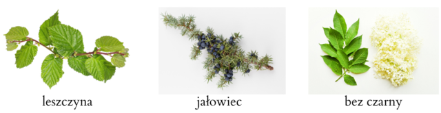 Leszczyna rozpoczyna swoje kwitnienie w styczniu. Jej męskie kwiaty są zbierany w kwiatostany (kotki), które wysypują pyłek. Jałowiec ma ostre i sztywne igły, jej szyszko – jagody dojrzałe mają kolor granatowy, a niedojrzałe zielone. Czarny bez – kwiaty czarnego bzu są małe, posiadają białą barwę, rosną w skupieniach, które są nazywane kwiatostanami. Owoce czarnego bzu mają kolor fioletowy, natomiast liście brzydko pachną. Krzewy są roślinami wieloletnimi, ich łodygi są zdrewniałe, jednak nie tworzą pnia tak grubego, jak drzewa. Mogą rosnąć od 2 do 5 metrów. Krzewy rosną w podszycie w lesie.