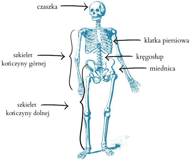 Musisz nauczyć się pokazywać główne części szkieletu na własnym ciele, ale w nauce pomoże Ci poniższy schemat.