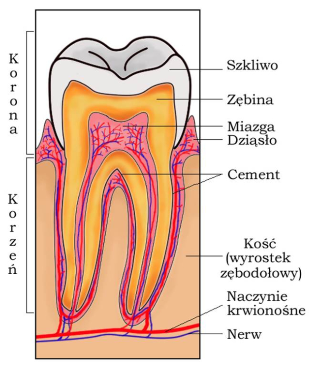 Zęby stanowią istotny element w procesie przygotowywania pożywienia do trawienia. Aby budowa zębów była prawidłowa, należy dostarczać organizmowi w swojej diecie odpowiedniej ilości witamin i soli mineralnych. Dlatego ważne jest, aby chodzić do stomatologa, ponieważ pilnuje on, aby na zębach nie dochodziło do rozwoju bakterii, które są źródłem groźnej choroby próchnicy. Uszkadza ona szkliwo zęba i jego części znajdujące się pod spodem.