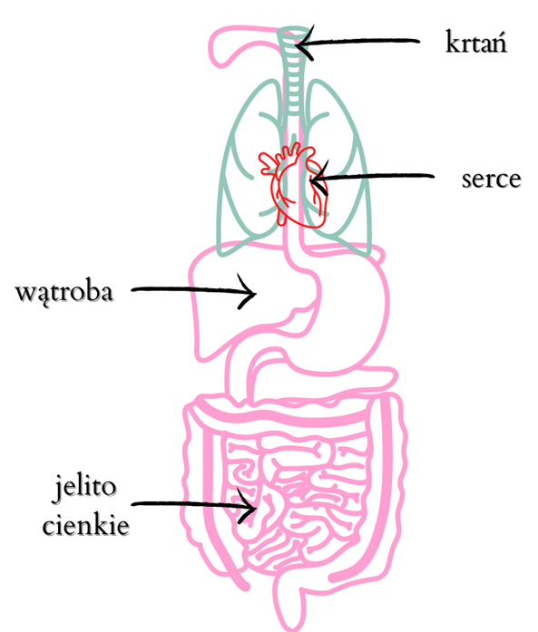 Jelito cienkie – bierze udział w trawieniu pokarmu oraz jego przenikaniu do krwi.