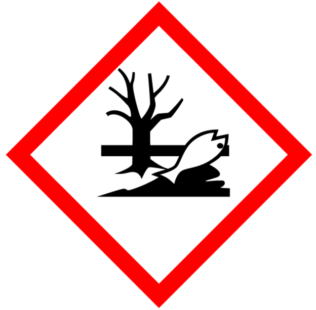 Zdjęcie z drzewem i rybą oznacza substancję niebezpieczną dla środowiska.