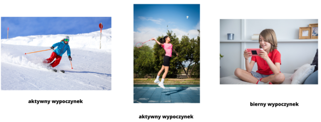 Zdjęcie (po lewej stronie, pierwsze) przedstawiające osoby jeżdżące na nartach – aktywny wypoczynek.