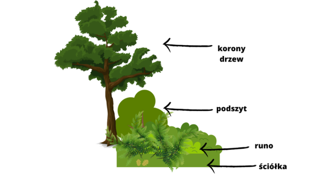 | Drzewa | Podszyt | Runo leśne |