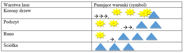 Las jest miejscem zamieszkania wielu zwierząt, którym daje schronienie oraz pożywienie. Dla człowieka również stanowi miejsce odpoczynku, pożywienia. Relaksu i przetwórczą (drewno). Las składa się z warstw: najniżej położonej: ściółki leśnej (znajdują się w niej obumarłe szczątki zwierzęce i roślinne), kolejna – runo leśne (paprocie, mchy – niska roślinność) następna warstwa to – podszytu (krzewy oraz młode drzewa) i ostatnia korony