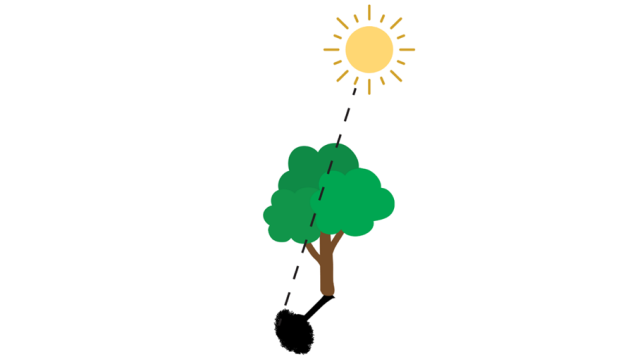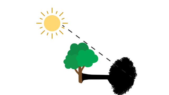 Rano i wieczorem – podczas wschodu i zachodu Słońca (gdy Słońce jest nisko) cienie są długie. Z kolei w momencie górowania Słońca – w południe, cienie są najkrótsze.