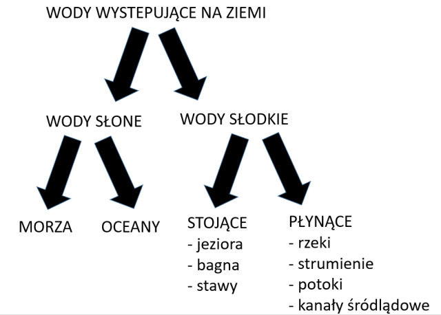 Twoim zadaniem jest stworzenie schematu, który przedstawiał będzie podział wód występujących na Ziemi.