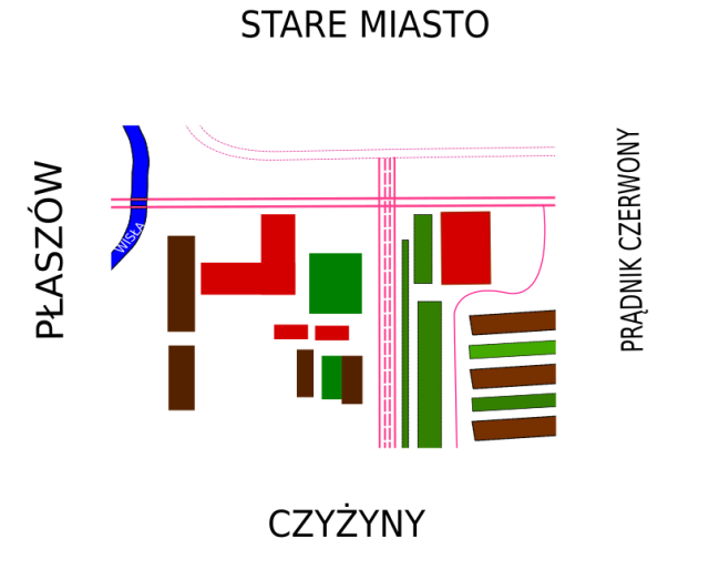 Na gotowy szkic nanieś odpowiednie nazwy okolicy – dzielnic, z którymi sąsiaduje Twoja, czy też gmin, które otaczają Twoją.
