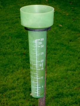 Deszczomierz to pojemnik, który zawiera skalę służącą do odczytu ilości wody. Należy przez całą dobę zbierać w nim wodę. Dlatego deszczomierz ustawiany jest w ogródku meteorologicznym. Skalą pomiaru są litry na metry.