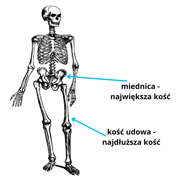 Najdłuższa jest kość udowa, a największa miednica. Najmniejsze są kosteczki słuchowe.